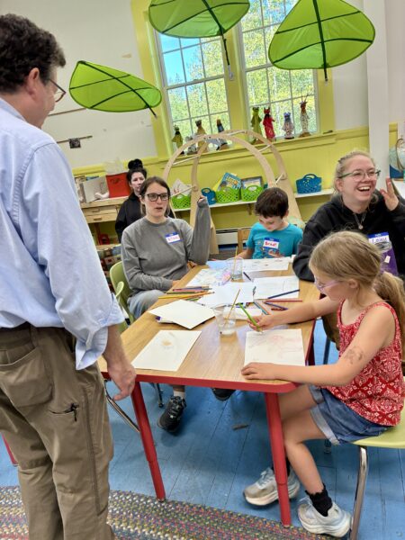 Soon after, families, teachers, and community partners gathered outside in a big circle to learn more about the day’s activities. Yvonne Thomas, Sunbeam Education Coordinator, led the group in a series of fun, get-to-know-you games. Laughter filled the air as kids and grown-ups alike moved, played, and connected—setting the perfect tone for a day full of art, stories, and imagination.