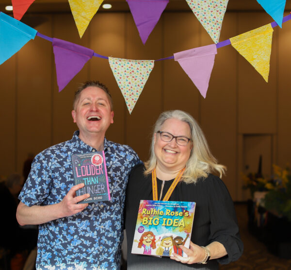 John Schu joyfully poses with our Executive Director, Courtney Waring.